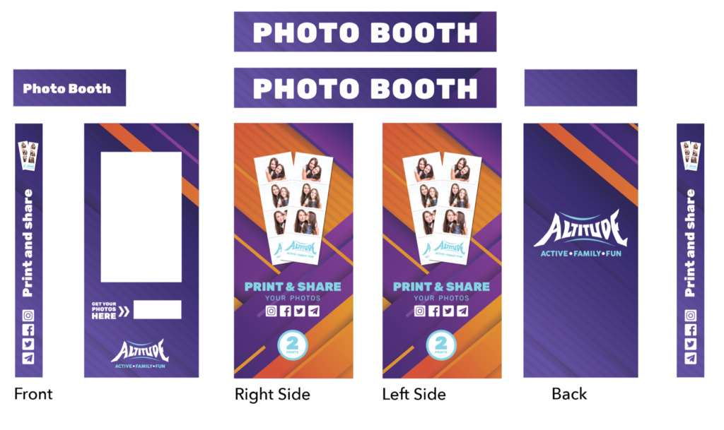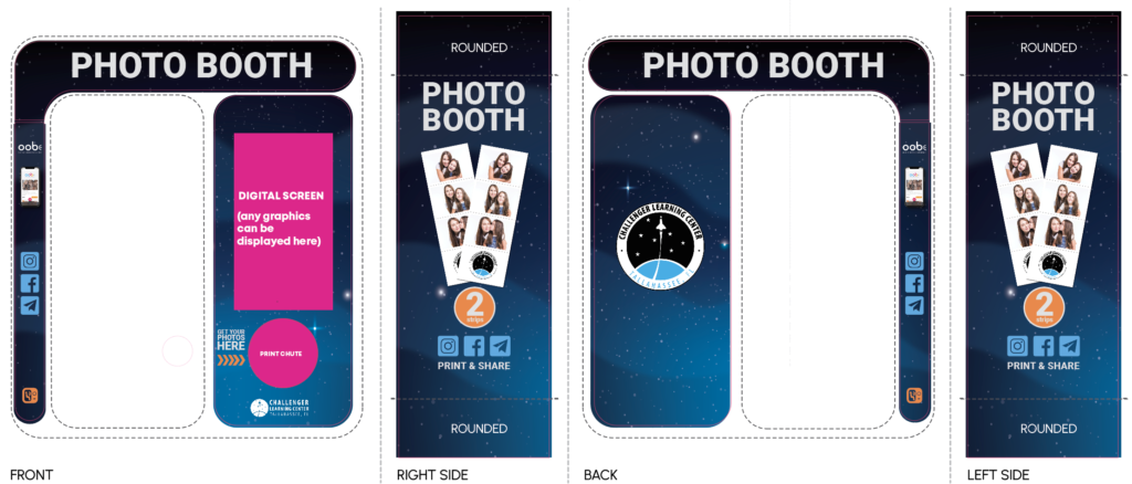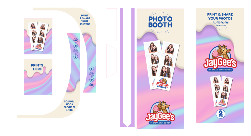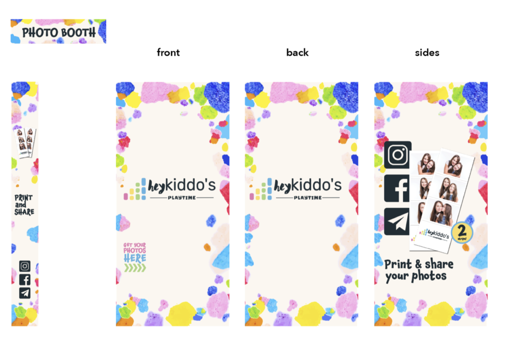 Our in-house team creates bespoke designs for booth exterior, UI/UX & photo strips