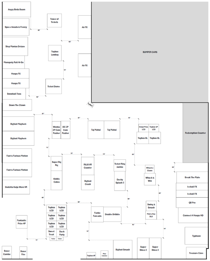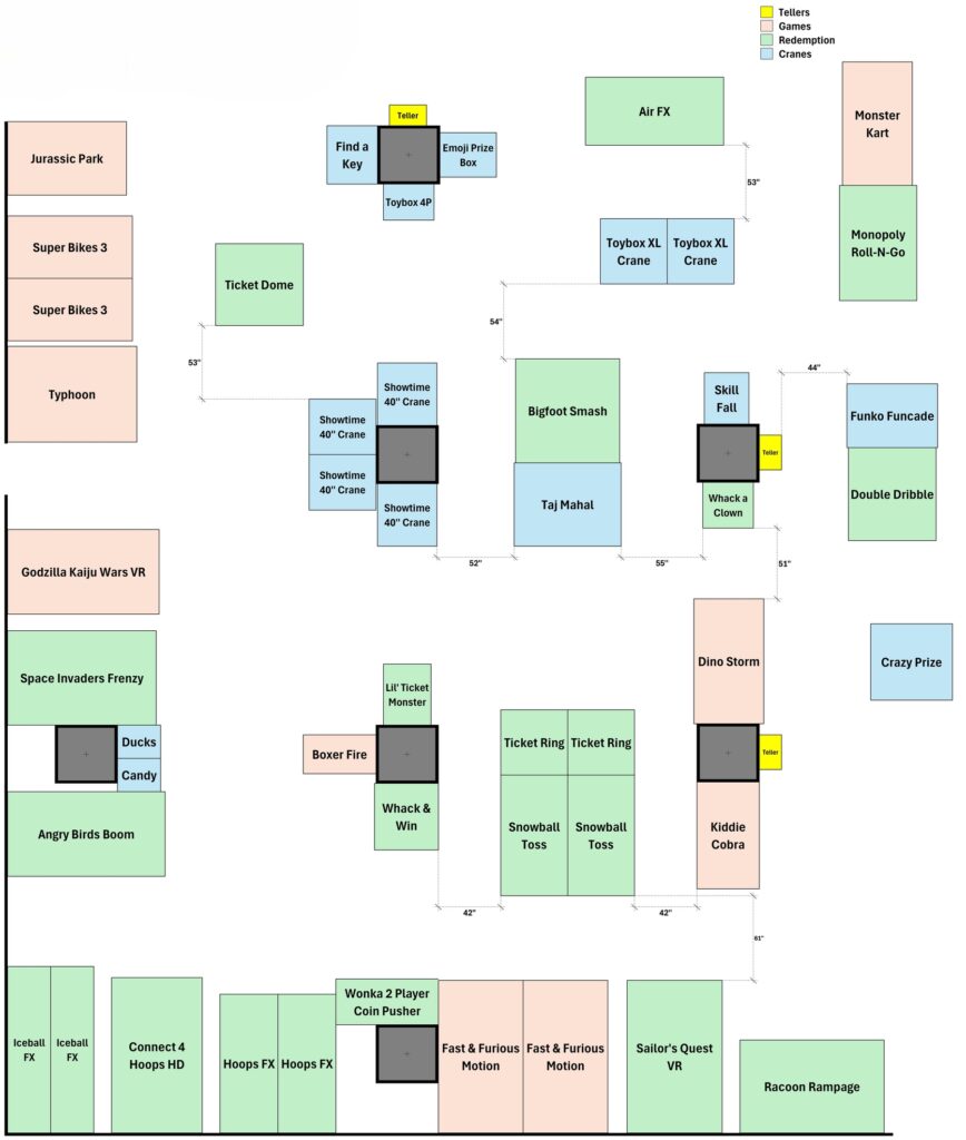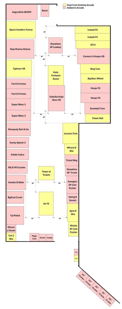 - From this, we can determine what type of room (e.g., singular games, standard arcade, redemption area) and what mix of games make the most sense for your space